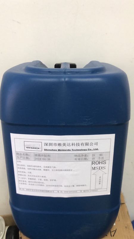 处理剂用于(配缸)光亮剂、(添加)光亮剂酸性光亮镀锡新工艺的槽液处理。酸性光亮镀锡电解液,经过一段时间生产后电解液由于二价锡的氧化、水解而变浑,这时采用一般滤芯过滤,活性炭吸附等常规方法,无法使游离胶体除去,从而影响镀层的质量。采用处理剂却可在常温下,极短时间内,除去游离胶体,从而使镀液变清,再添加适量(配缸)光亮剂,就可恢复原来的电镀功能,保证生产正常。